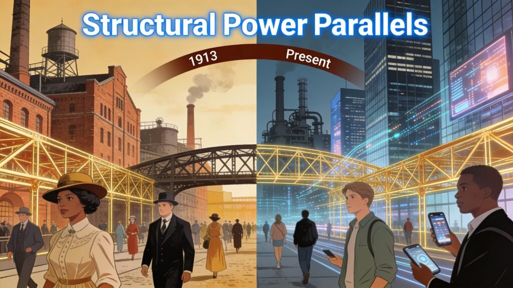 | The Federal Reserve was structured to grant private financial interests decisive influence over monetary policy and credit availability. | Digital infrastructure allows for real-time transaction monitoring and the automatic enforcement of financial blockades against dissenters. |